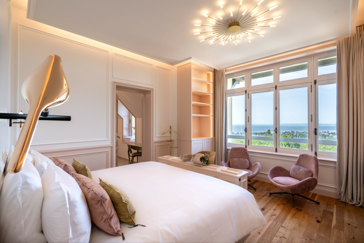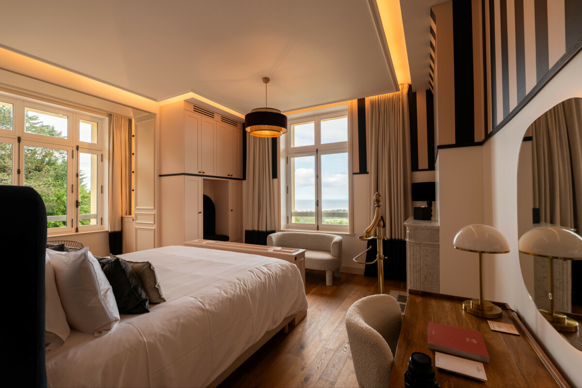 Au premier étage du Manoir, la Suite Vue Mer vous offre une expérience unique, avec une vue imprenable sur la Côte Fleurie et la mer scintillante. Détendez-vous dans cet espace luxueux et élégant, où le murmure des vagues devient la mélodie de votre séjour.