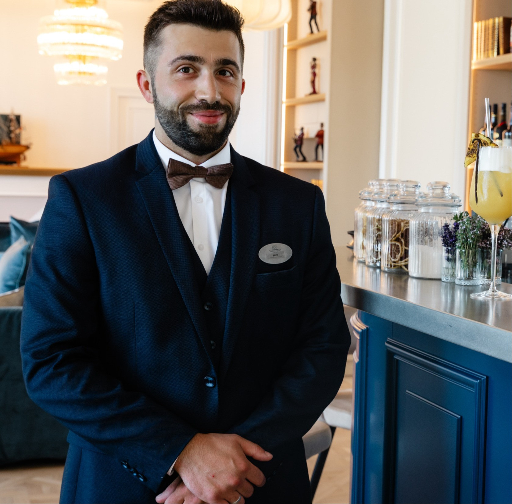 Attentif aux savoir-faire et aux distilleries locales, Enzo aime aller à la rencontre des producteurs pour découvrir, comprendre et transmettre les histoires et émotions qui se cachent derrière chaque spiritueux. Cette proximité nourrit sa créativité et enrichit l’expérience qu’il propose à ses convives.